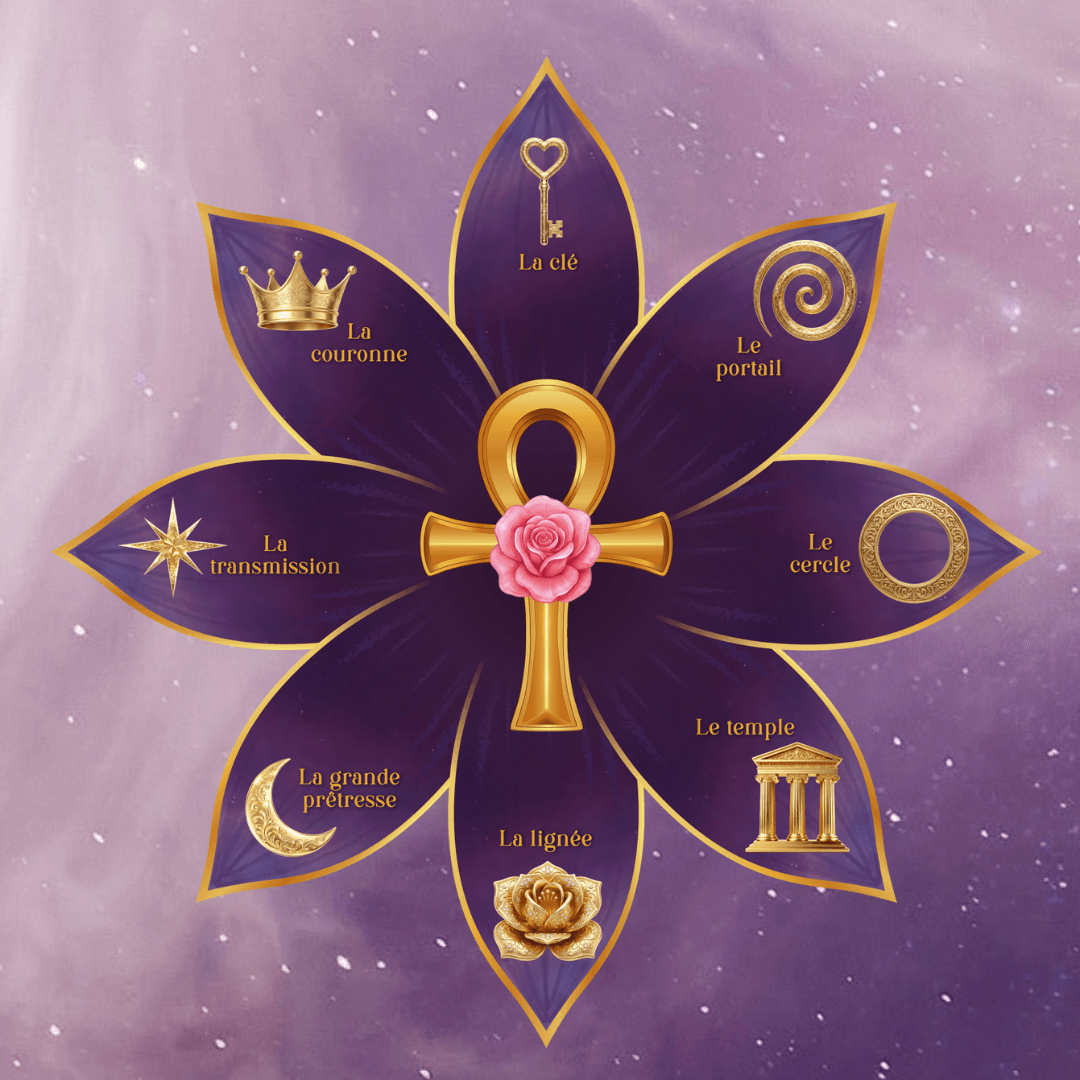 Guidée par la sagesse des déesses, cette Voie vous invite à traverser 8 pétales initiatiques, chacun portant une clé de transformation, de reconnexion et d’activation intérieure.